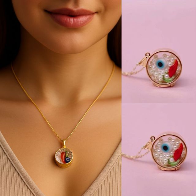 Colar Tâlisma Tira Mal Olhado/Inveja - Oho Grego + Pimenta Vermelha - Proteção e Energia Positiv
