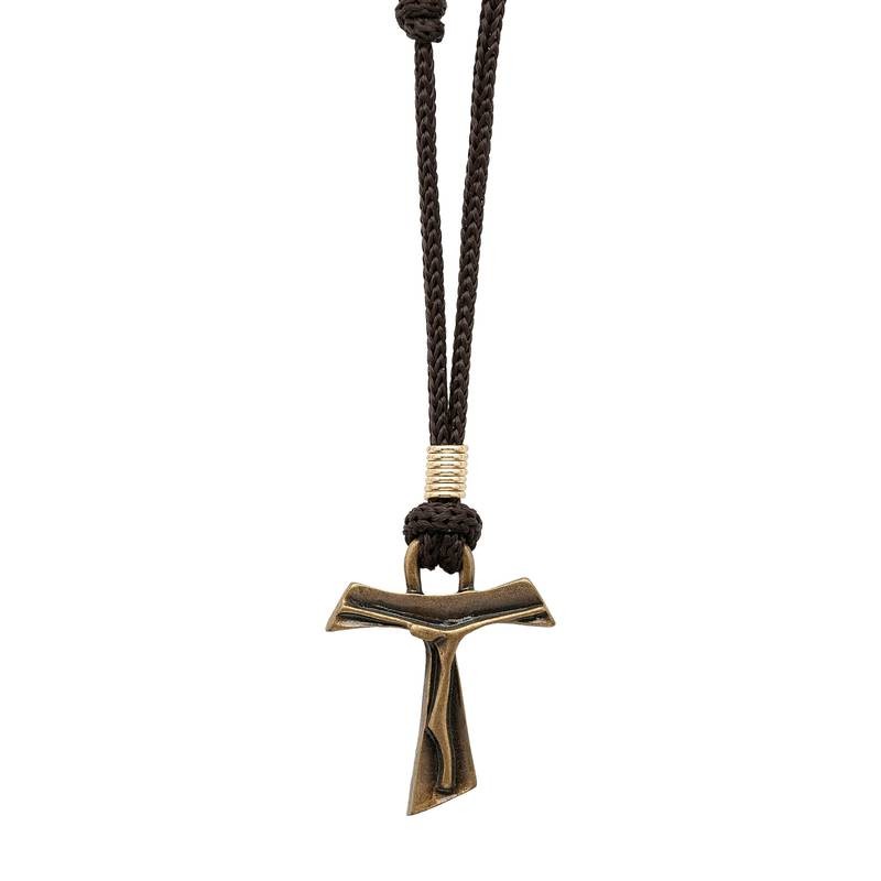 Colar Tau Franciscano Com Cristo em Metal Dourado