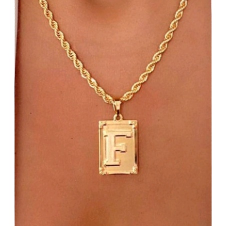 Colar trançado baiano Aço Inoxidável + Pingente letras nome 45cm/2.4mm - Folheado
