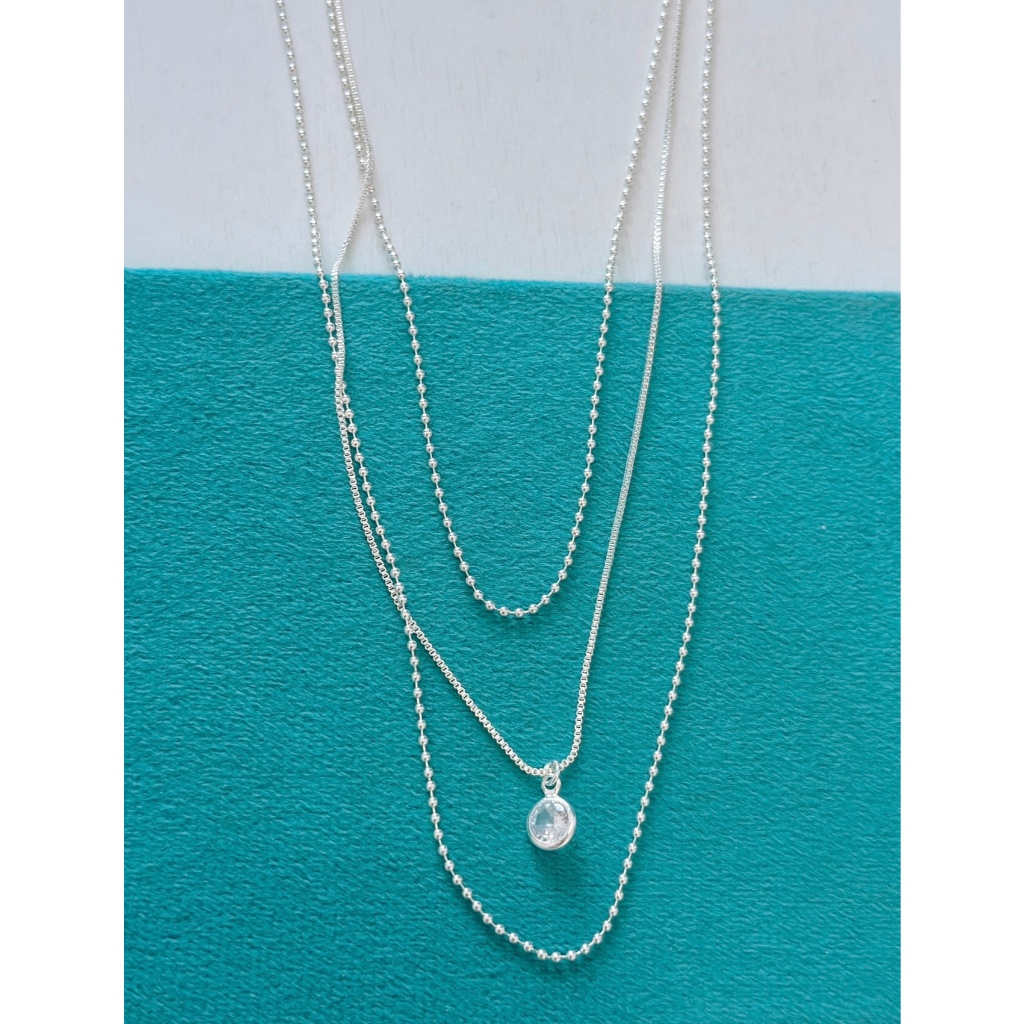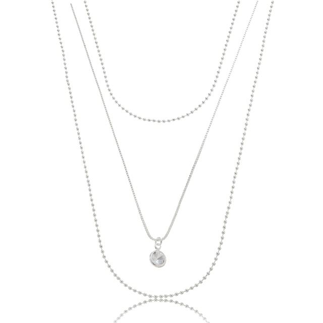 Colar triplo (3 em 1) bolinhas e ponto de luz banhado à prata 925