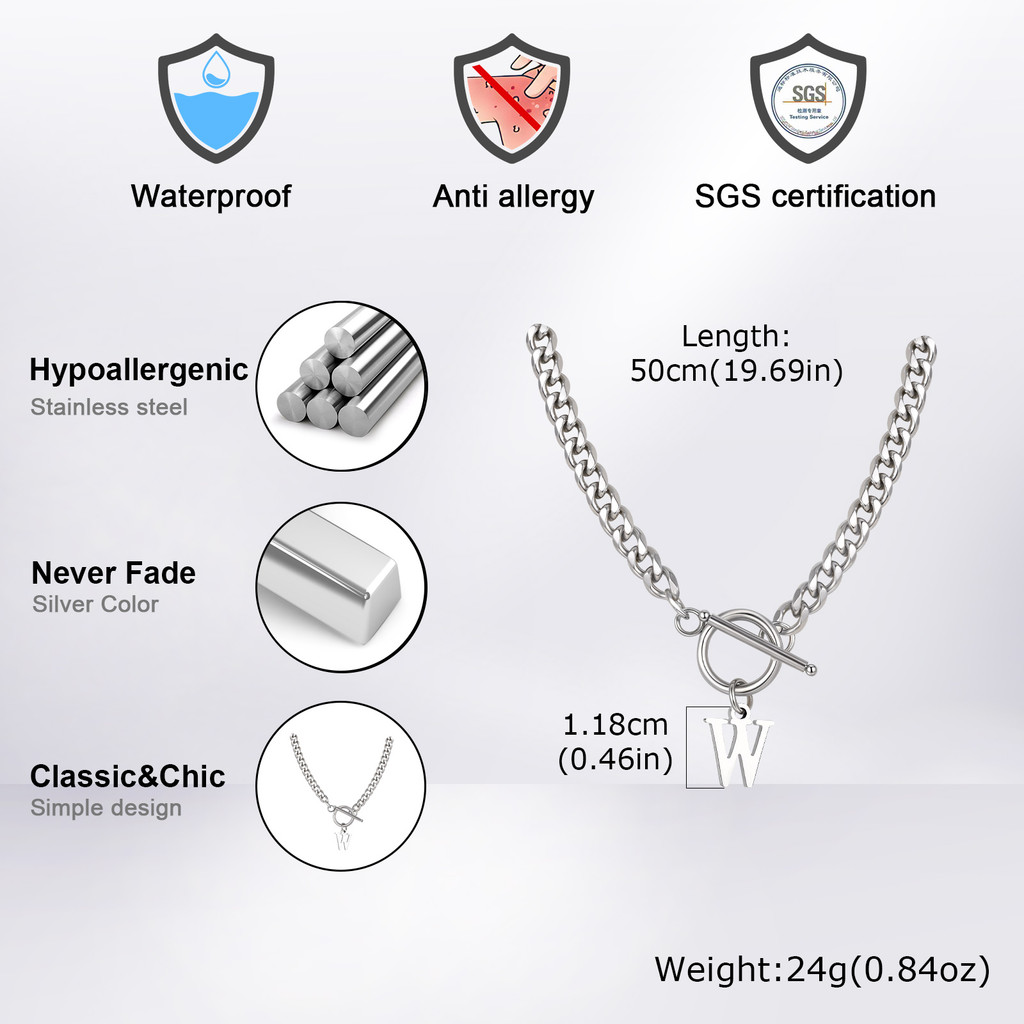 Colar Vnox Punk Rap , Corrente De Ligação De Corte Hexagonal De Aço Inoxidável Com Fecho OT , Pingente De Carta Personal