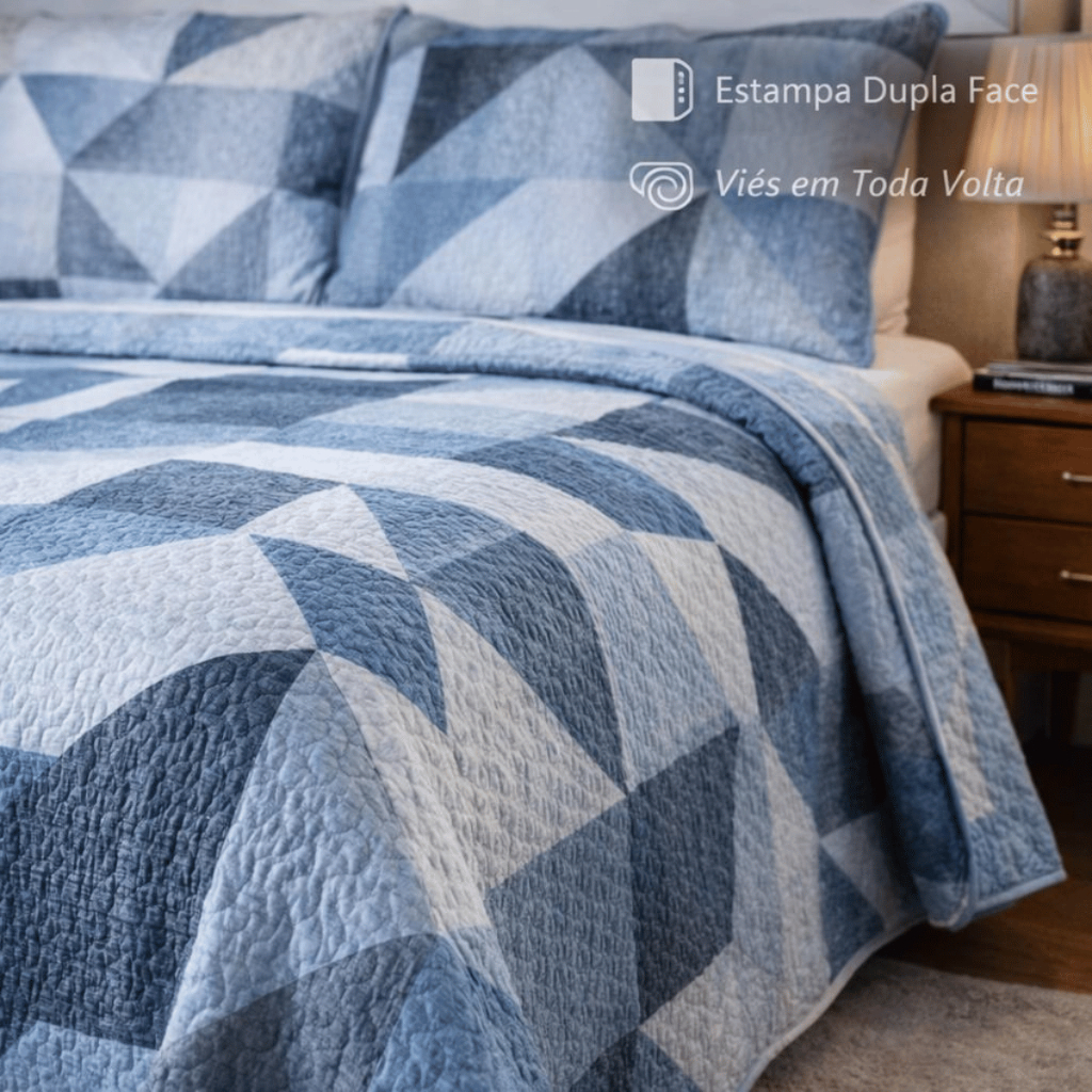 Colcha Casal Dupla Face Estampada com Porta Travesseiro 3 Peças Bouti