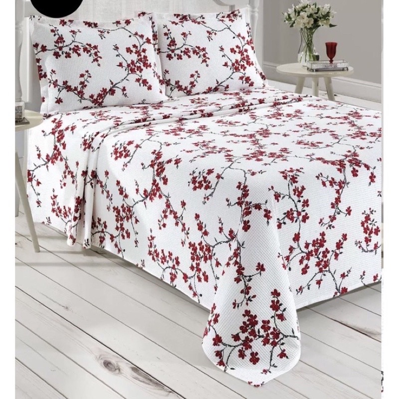 colcha casal piquet em algodão com fronhas 3 peças