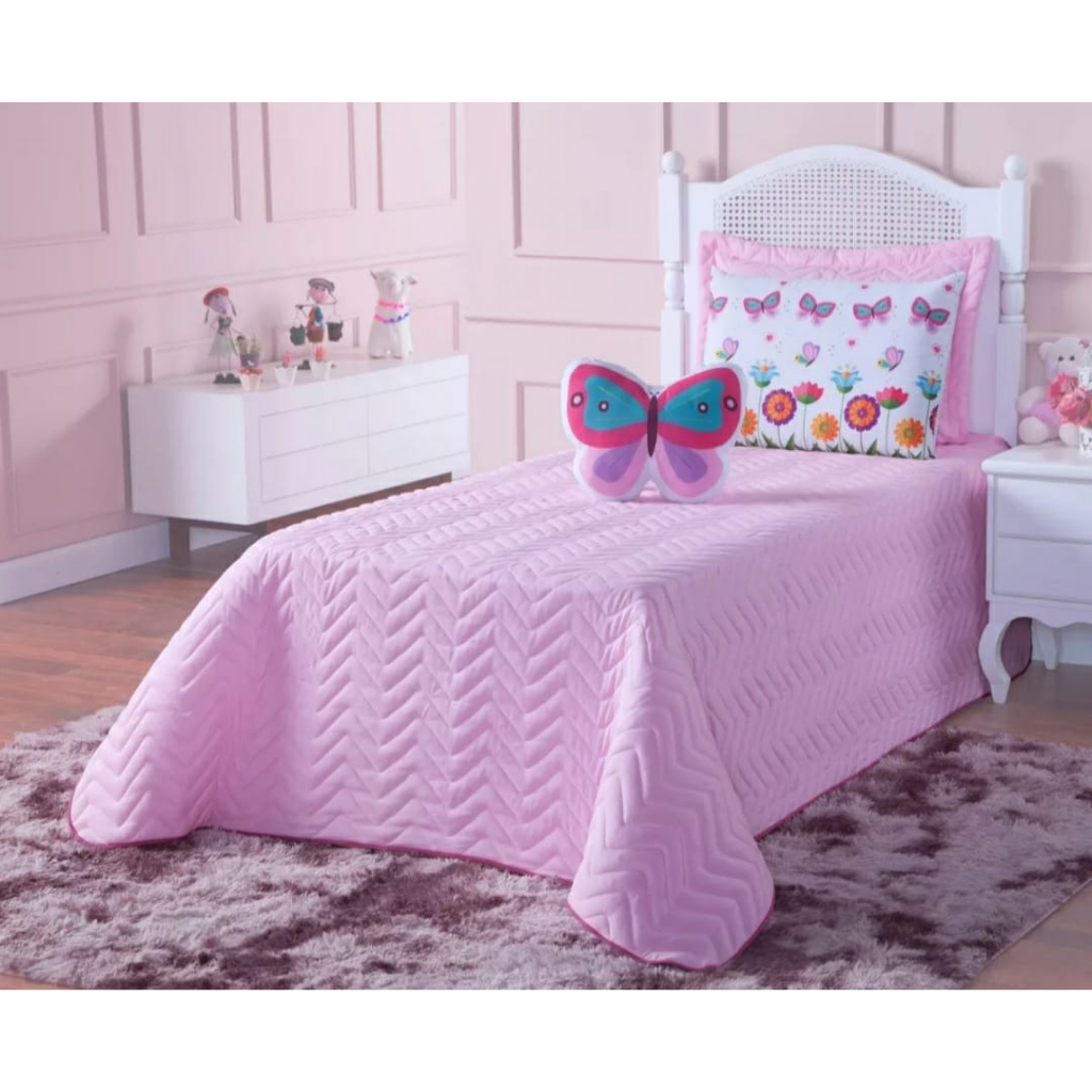 Colcha Cobre Leito Borboleta Solteiro 4 Peças Infantil Menina
