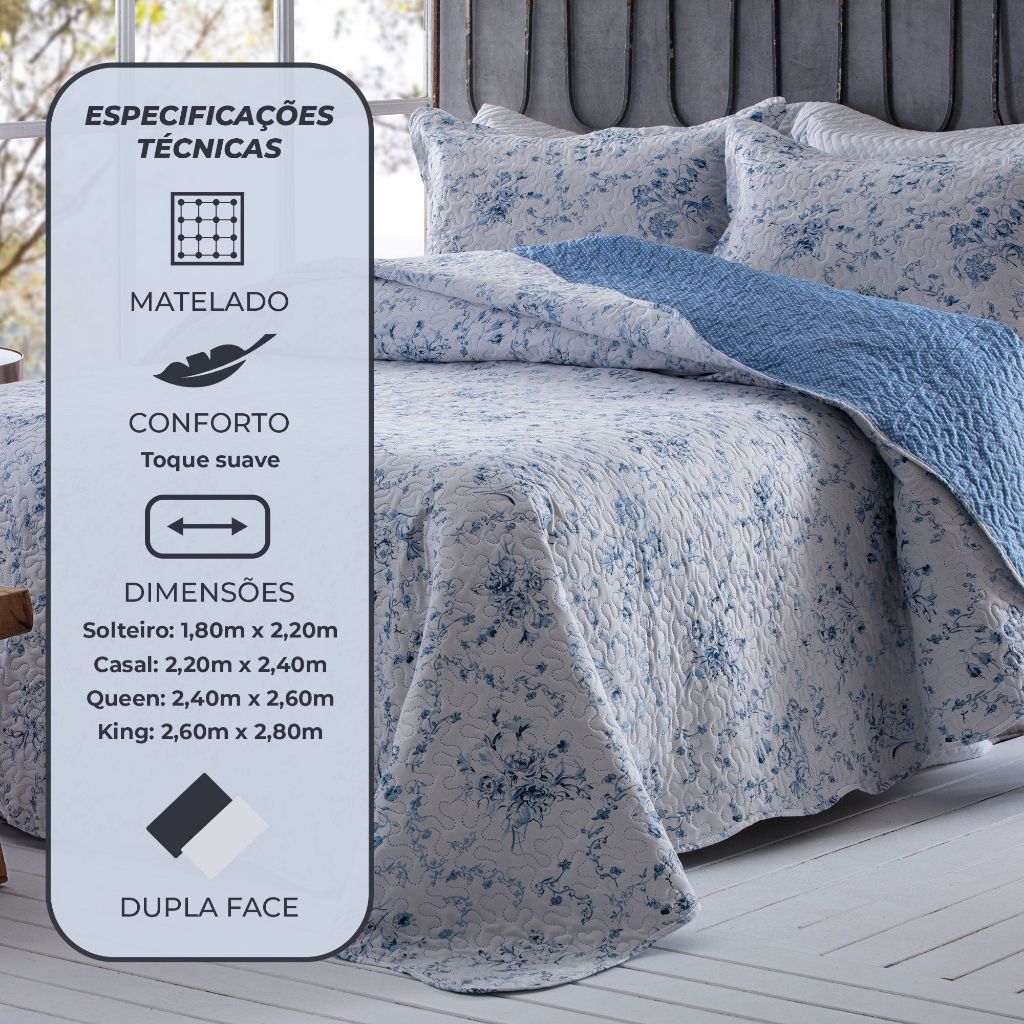 Colcha Cobre Leito Dupla Face King 3 Peças Bouti 2,60m x 2,80m Com Porta Travesseiro Rozac Liz