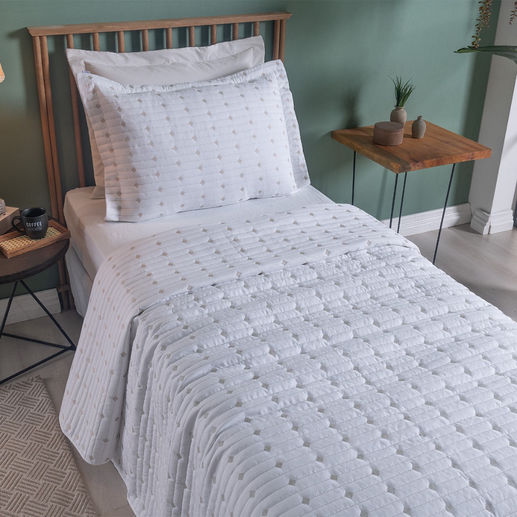 Colcha Cobre Leito Solteiro 2 Peças Pecal Decor Bordado 200 fios