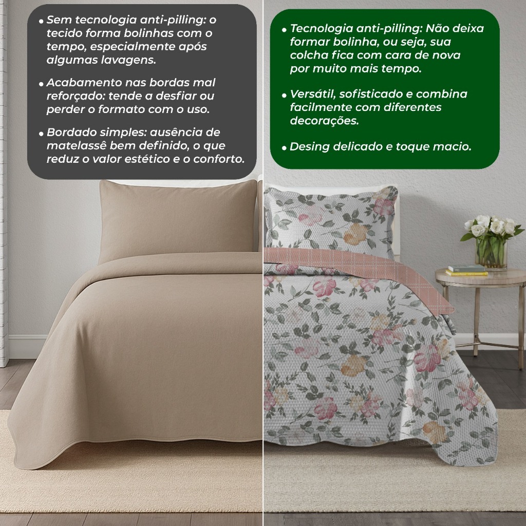 Colcha Paris Corttex Solteiro – 2 Peças 🛏️ Renove o visual do seu quarto com a Colcha Paris Corttex, inspirada no charme da cidade luz. Ideal para quem busca beleza, conforto e praticidade no dia a dia. Produzida com materiais de alta qualidade, possui toque macio e ótimo acabamento, deixando a cama sempre organizada e aconchegante. Acompanha porta-travesseiro coordenado, garantindo um visual harmonioso. ✔ Produto 100% original Corttex ✔ Ideal para uso diário ✔ Design elegante e moderno Conteúdo da Embalagem: 1 Colcha Solteiro – 2,20 m x 1,80 m 1 Porta-travesseiro – 50 cm x 70 cm ❓ Perguntas Frequentes (FAQ) • O produto é original? Sim. Produto original Corttex. • Serve em cama de solteiro padrão? Sim, as medidas são compatíveis com cama de solteiro padrão. • Acompanha travesseiro ou enchimento? Não. Acompanha apenas o porta-travesseiro (capa). • Pode ser lavado na máquina? Sim. Recomendamos seguir as instruções da etiqueta. • As cores são iguais às fotos? As imagens são ilustrativas e podem apresentar leve variação de tonalidade conforme a tela. 🏷️ Tags #colchasolteiro #colchacorttex #colchaparis #enxoval #decoraçãoquarto #camasolteiro #produtooriginal