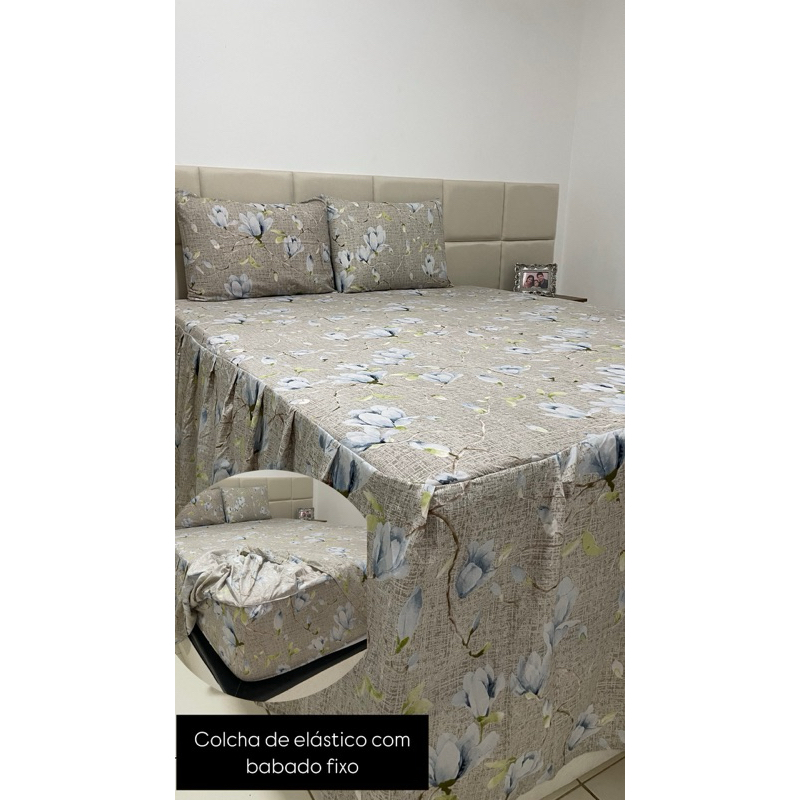 Colcha com Babado com Elástico Conjugado 400 Fios Toque de Algodão | Cama Box Casal ou Queen