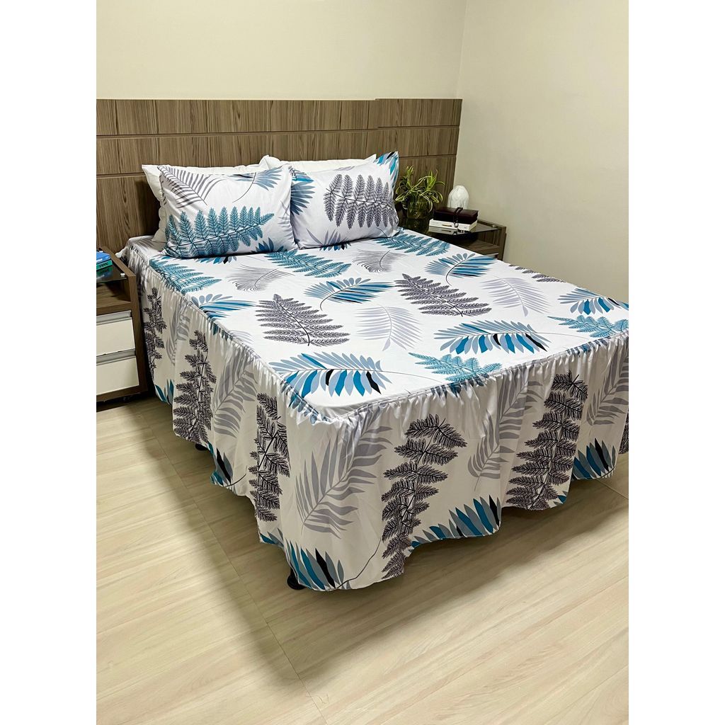 colcha de cama casal com babado e lençol de elástico embutido 2 fronhas percal 400 fios cama sempre arrumada