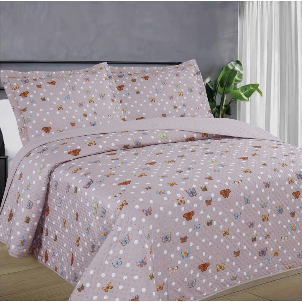 Colcha Estampada Poá Borboleta Solteiro Casal Queen Cobre Leito Matelado Varias Cores Super Lançamento