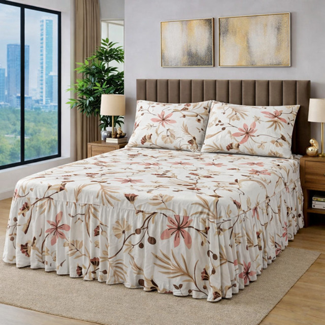Colcha Lençol Casal Com Babado Percal Toque de Algodão 400 Fios