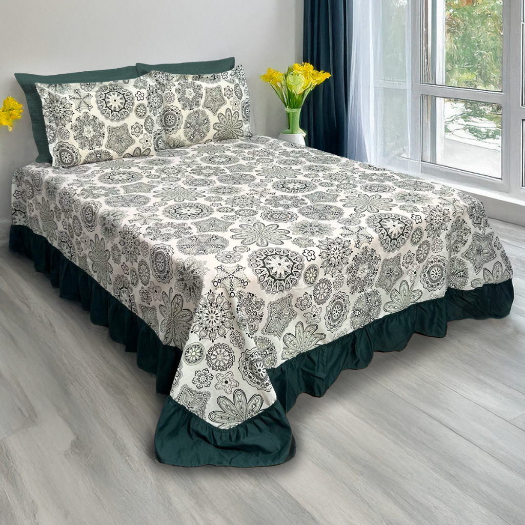 Colcha Queen Charlotte 3 Peças | Cobre Leito Casal Box – Estampa Elegante + Porta Travesseiro