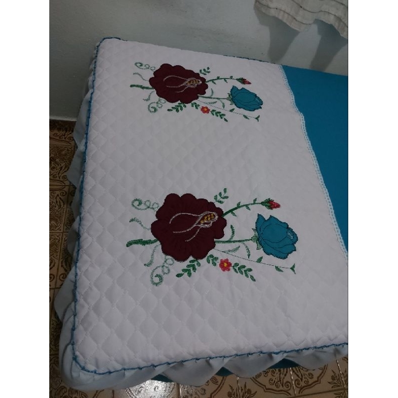Colcha Solteiro colchão padrão. A Faixa bordada é feita no Oxford Matelado (forrado). O restante da colcha leva Oxford Liso. Essa colcha vai acompanhada da fronha (porta travesseiro). Colcha com babado Duplo e babadinho na fronha. Os bordados variam e as cores também. Podem entrar em contato pelo chat e fazer a escolha de sua preferência.
