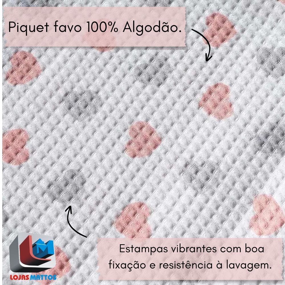 Renovar o quarto nunca foi tão simples quanto com o Kit Colcha Queen Piquet Estampada da Döhler. Com um toque acolhedor e delicado, ela transforma o ambiente em um espaço mais leve, harmonioso e cheio de personalidade. Suas estampas encantam à primeira vista, trazendo vida ao quarto com desenhos que variam entre o romântico, o moderno e o clássico. O grande diferencial do Kit Colcha Queen Döhler está no seu tecido: o piquet favo, um clássico atemporal do enxoval brasileiro. Conhecido por sua textura suave e levemente encorpada, o piquet é um tecido de algodão com uma trama especial que forma pequenos relevos em padrão geométrico. Essa estrutura não é apenas charmosa ao toque e ao olhar; ela também tem uma função prática: permite a circulação de ar com facilidade, o que torna a colcha naturalmente mais respirável e fresca, ideal para climas mais quentes ou para quem prefere uma cama leve e arejada. A Döhler tem o cuidado de unir beleza e funcionalidade, e isso se traduz nessa colcha que resiste ao tempo sem perder o charme, mantendo-se bonita e agradável mesmo com o uso contínuo. Marca: Döhler Composição: 100% Algodão Conteúdo: 1 Colcha Queen Piquet e 2 Porta Travesseiros Medidas: 2,40 m X 2,50 m / 70 cm x 50 cm