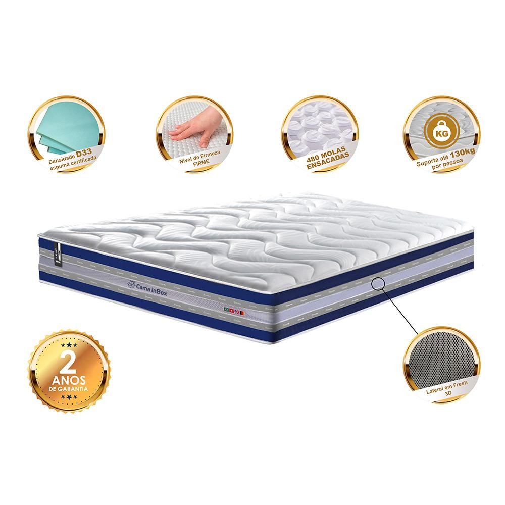 Colchão Casal de Molas Ensacadas D33 Cama inBox Select Firme 138x188x32 Azul