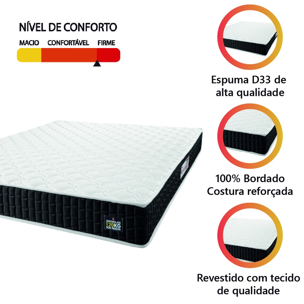 Colchão Casal Espuma D33 New Millenium 138x188x19cm Branco/Preto Hellen-Suporta até 120kg por Pessoa
