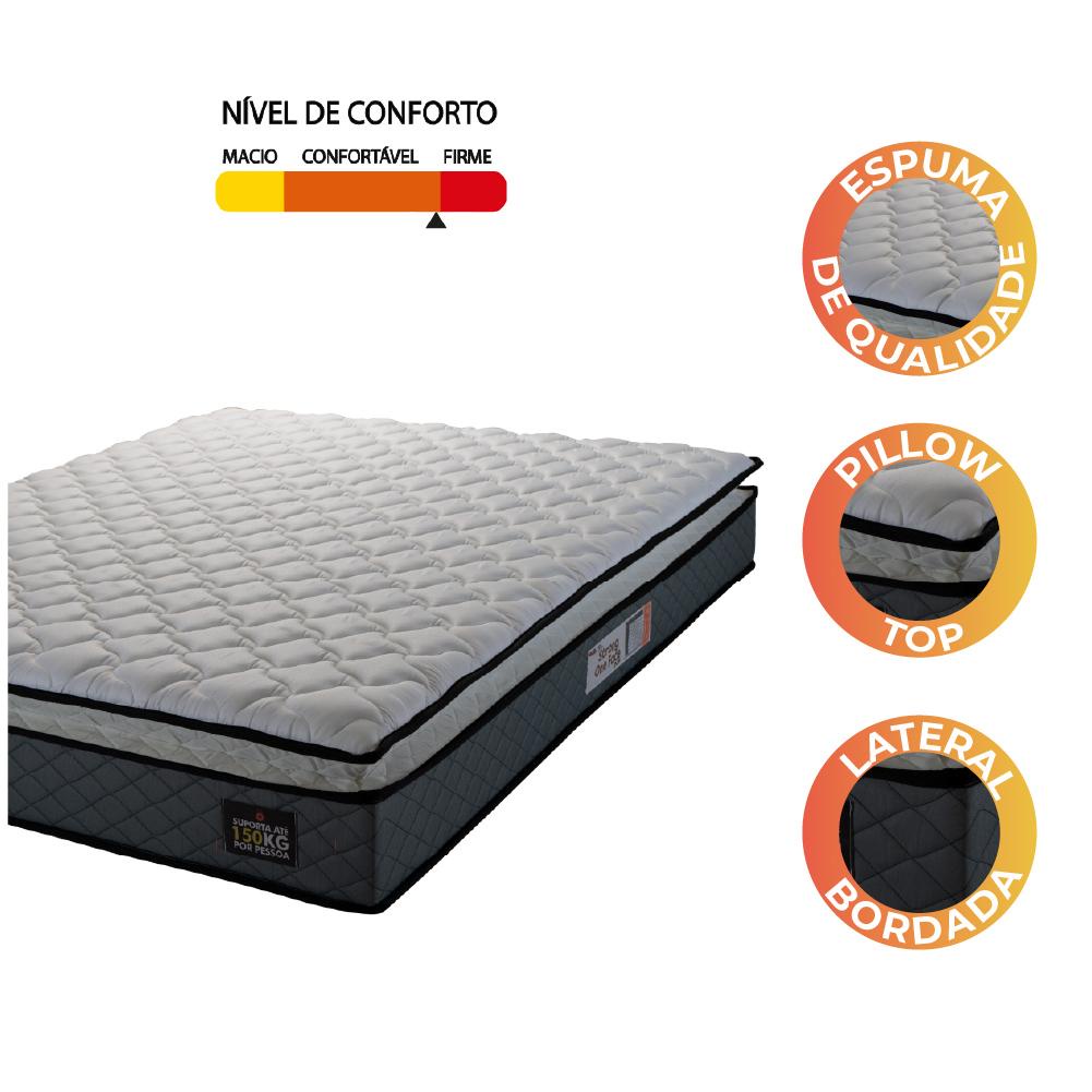 Colchão Casal Espuma D45 Pillow Top Strong 138x188x24cm Cinza/Branco Hellen - Suporta até 150kg por Pessoa
