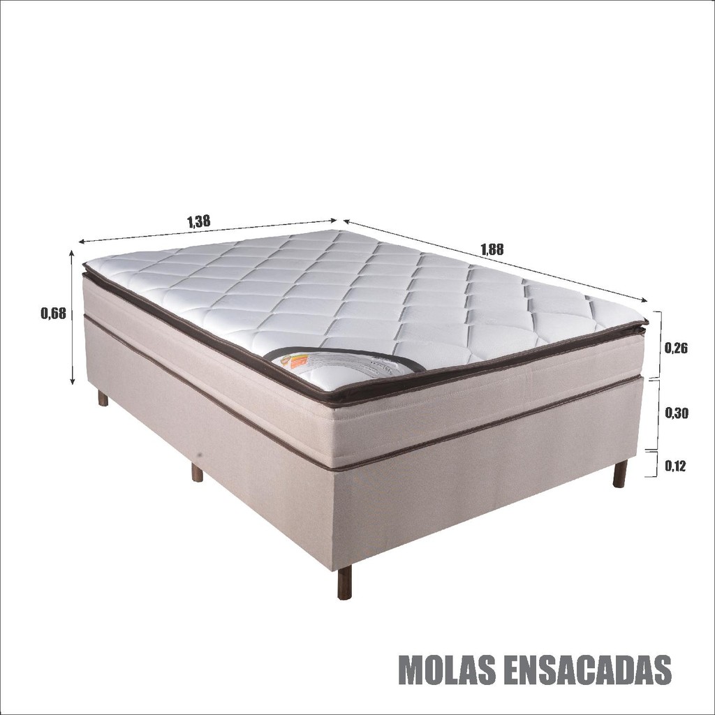 Colchão Casal Molas Ensacadas Colorado com Box 138x188x67 Bom Pastor Conforto e qualidade no seu descanso com o Colchão Casal Molas Ensacadas Colorado 138x188x67 cm com Box da Bom Pastor. Produzido com molas ensacadas individualmente, proporciona suporte ideal ao corpo e maior durabilidade. A espuma D33 selada oferece firmeza na medida certa, enquanto o Super Pillow Top garante maciez extra para noites mais tranquilas. A base acompanha box de madeira 100% reflorestada, reforçando o compromisso com a sustentabilidade. Altura total de 67 cm e acabamento de alto padrão. Especificações: • Tecido em malha construída com multifilamentos de poliéster o que proporciona uma malha resistente e com toque macio aumentando a durabilidade do seu colchão. • Estrutura em molas ensacadas individualmente e borda lateral em espuma de alto resiliência. • Bordado em Matelassê. Proporcionando maior maciez e mais volume ao colchão. • Altura: 67cm (Base 30 cm, Colchão: 26 cm, Pés: 12 cm) Observações importantes: Produtos podem apresentar diferenças de tonalidades entre a foto na tela e o produto real, devido a calibração de cor da tela. Os objetos decorativos que ambientam as fotos não são vendidos e não acompanham o produto. O aspecto ou proporção do colchão vai variar de acordo com o tamanho escolhido (Solteiro, Casal, Queen, King). A foto serve apenas de referência para visualização de acabamento e detalhes estéticos do produto. O serviço de transporte não se responsabiliza por produtos que precisem subir escadas, ou ser içados a algum andar superior. Este serviço fica a cargo do cliente. Verifique as dimensões do produto antes de finalizar a compra. Certifique-se que o produto passa por escadas, vãos, portas ou janelas antes de finalizar a compra. A Loja Bom Pastor não faz montagem de produtos. Não nos responsabilizamos por erros de montagem. Manuais e peças para a montagem são fornecidos com o produto.