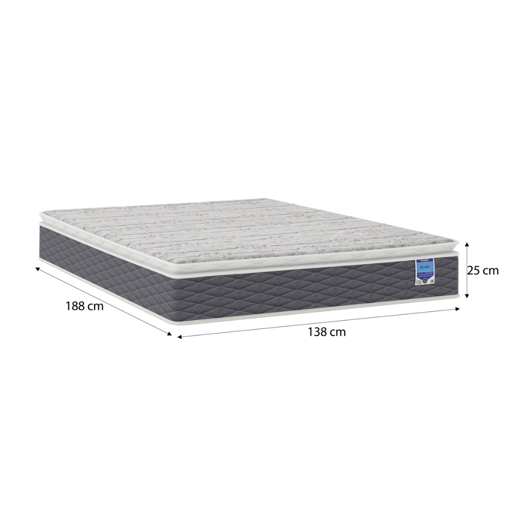 Colchão Casal Molas Ensacadas 138x188x26 Pillow Top Bertha | Umaflex Se você está procurando um colchão casal que realmente entregue conforto, estabilidade e durabilidade, o Bertha Umaflex foi desenvolvido para elevar o padrão das suas noites. Com tecnologia de molas ensacadas individualmente e Pillow Top integrado, ele oferece a combinação ideal entre maciez aconchegante e sustentação firme na medida certa. Ideal para quem deseja mais espaço para dormir com conforto e acordar com muito mais disposição todos os dias. 🌙 Tecnologia que você sente desde o primeiro uso ✅ Molas Ensacadas Individualmente (202 molas/m²) Cada mola atua de forma independente, garantindo: ✔ Redução da transferência de movimento ✔ Melhor adaptação ao corpo ✔ Distribuição uniforme do peso ✔ Maior durabilidade Mais estabilidade e conforto durante toda a noite. ✅ Pillow Top – Conforto Extra Camada superior que proporciona: ✔ Sensação de maciez imediata ✔ Mais aconchego ao deitar ✔ Conforto equilibrado sem perder sustentação Acabamento que valoriza o visual do colchão. ✅ Espuma D26 – Sustentação na Medida Certa ✔ Suporta até 120 kg por pessoa ✔ Boa resistência ao desgaste ✔ Estabilidade e conforto intermediário Nível de conforto: Intermediário (macio com suporte). 🛏️ Estrutura e Acabamento • Molas em Aço 1062 AR ATC 2.00 mm • Sistema One Face (não precisa virar) • Tampo em tecido plano 168g/m² • Lateral em tecido plano 142g/m² • Estrutura com EPS para maior estabilidade Produto certificado e fabricado com alto padrão de qualidade. 📏 Dimensões Largura: 138 cm Comprimento: 188 cm Altura: 26 cm Tamanho Casal — mais espaço e conforto para suas noites. 🔎 Especificações Técnicas Modelo: Bertha Tipo: Molas Ensacadas Individualmente Espuma: D26 202 molas por m² Peso suportado: 120 kg por pessoa Selo Inmetro: 08795-001-01 2021 Garantia: 12 meses Volumes: 1 💎 Diferenciais Umaflex ✔ Produção com tecnologia alemã Slabstock Liquid Lay Dow ✔ Controle rigoroso de qualidade e rastreabilidade ✔ Espumas dentro das normas ABNT ✔ Alta durabilidade e performance Marca reconhecida pela excelência em conforto. ⚠️ Informações Importantes • Não acompanha base box • Imagens ilustrativas • Pode haver pequena variação de tonalidade • Verifique as dimensões antes da compra • Confira a embalagem no ato da entrega 🛒 Invista na qualidade do seu sono O Colchão Casal Bertha Umaflex une tecnologia, conforto e segurança em um único produto. Garanta agora o seu e transforme suas noites.