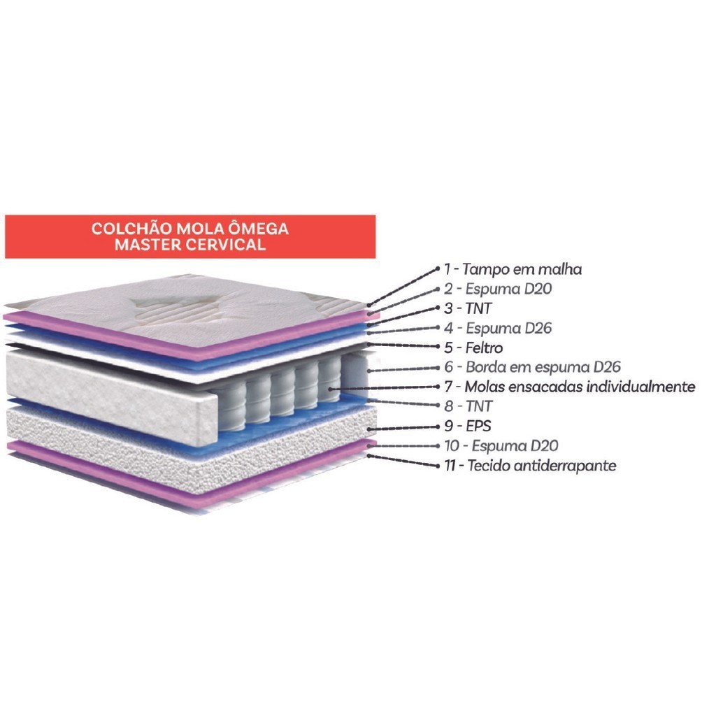 Colchão Casal Molas Ensacadas Ômega 138x188x32cm Cinza/Branco Hellen - Suporta até 110kg por Pessoa