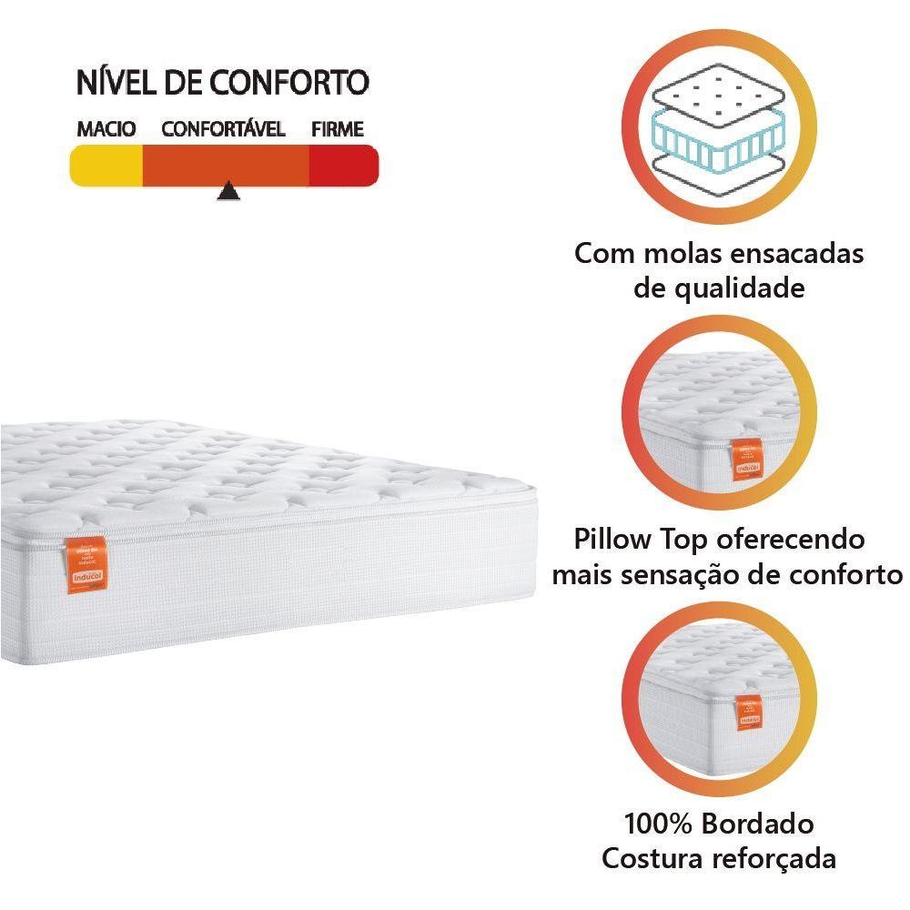 Colchão Casal Molas Ensacadas Real Pillow Top 138x188x27cm Branco Inducol Até 130kg Por Pessoa