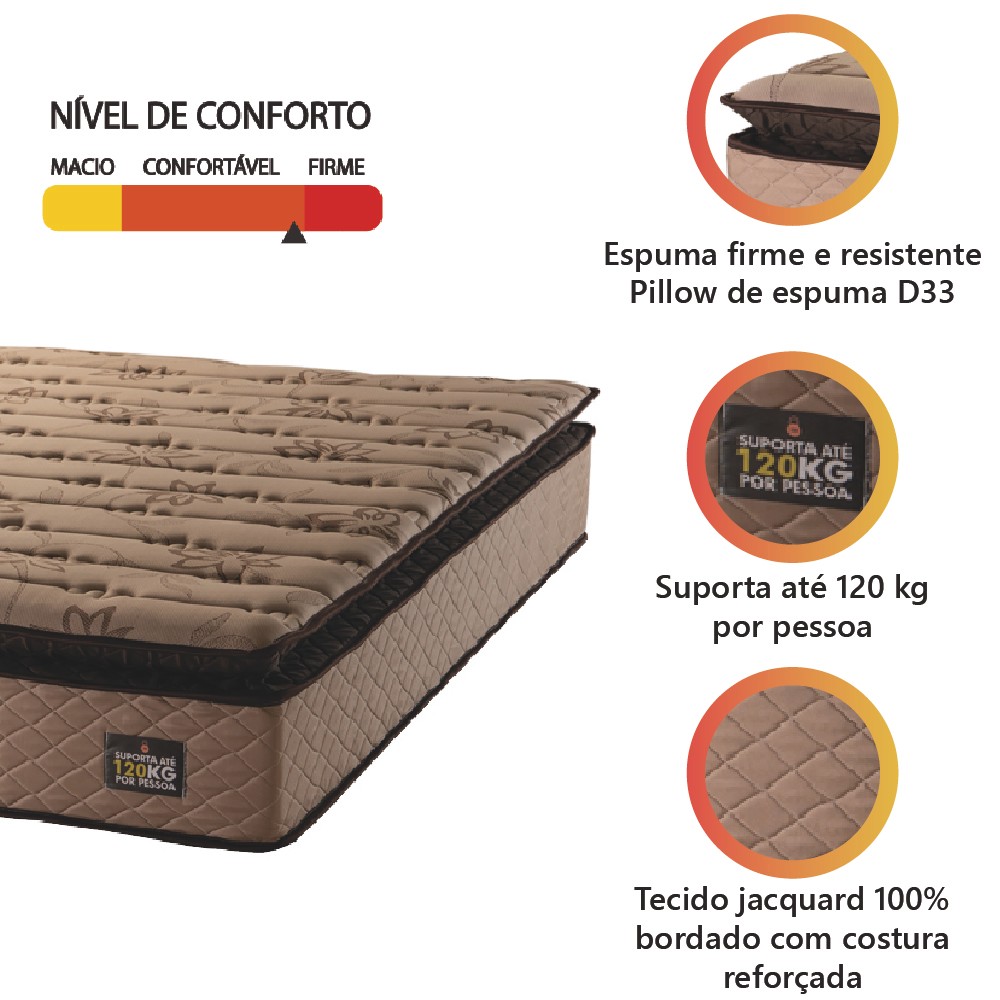 Colchão Casal Queen Espuma D33 Pillow Top Van Gogh 158x198x29cm Marrom Hellen - Suporta Até 120 Kg Por Pessoa