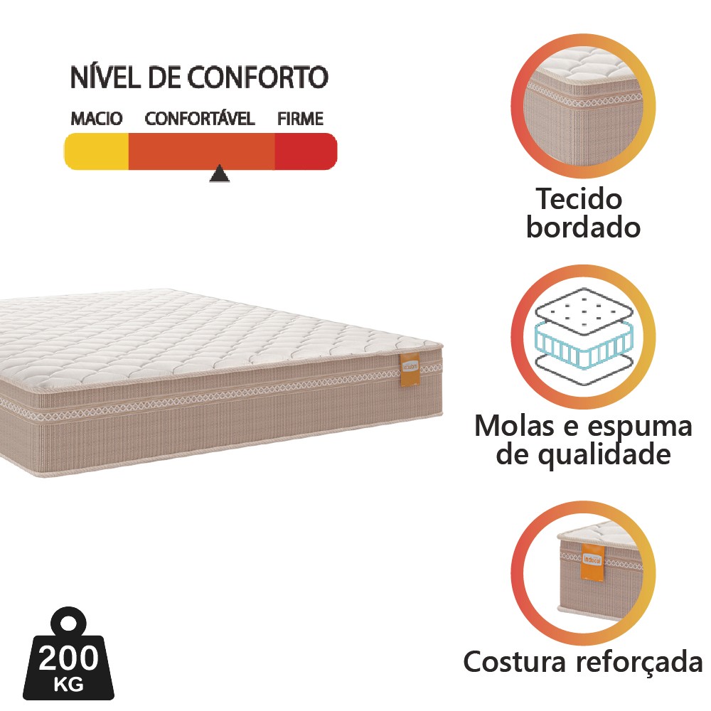 Colchão Casal Queen Molas Qatar 158x198x22cm Bege/Branco Inducol - Suporta Até 200 Kg Por Pessoa