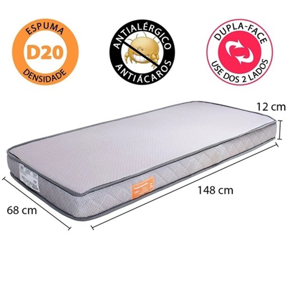 Colchão D20 Mini Cama Montessoriano Infantil 148x68x12cm BF Colchões