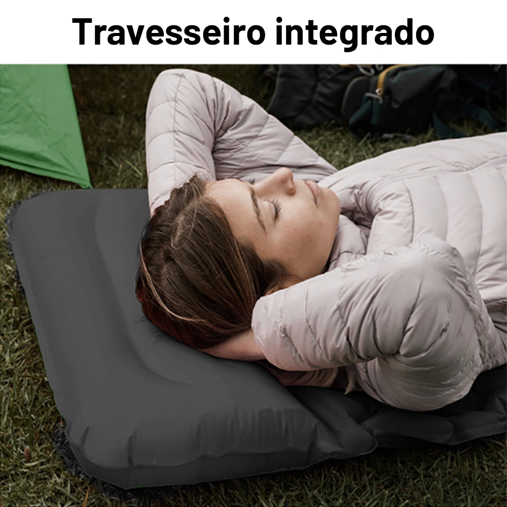 Colchão de Ar Inflável Camping Travesseiro Almofada De Viagem Bomba Embutida Solteiro Pesca Acampar