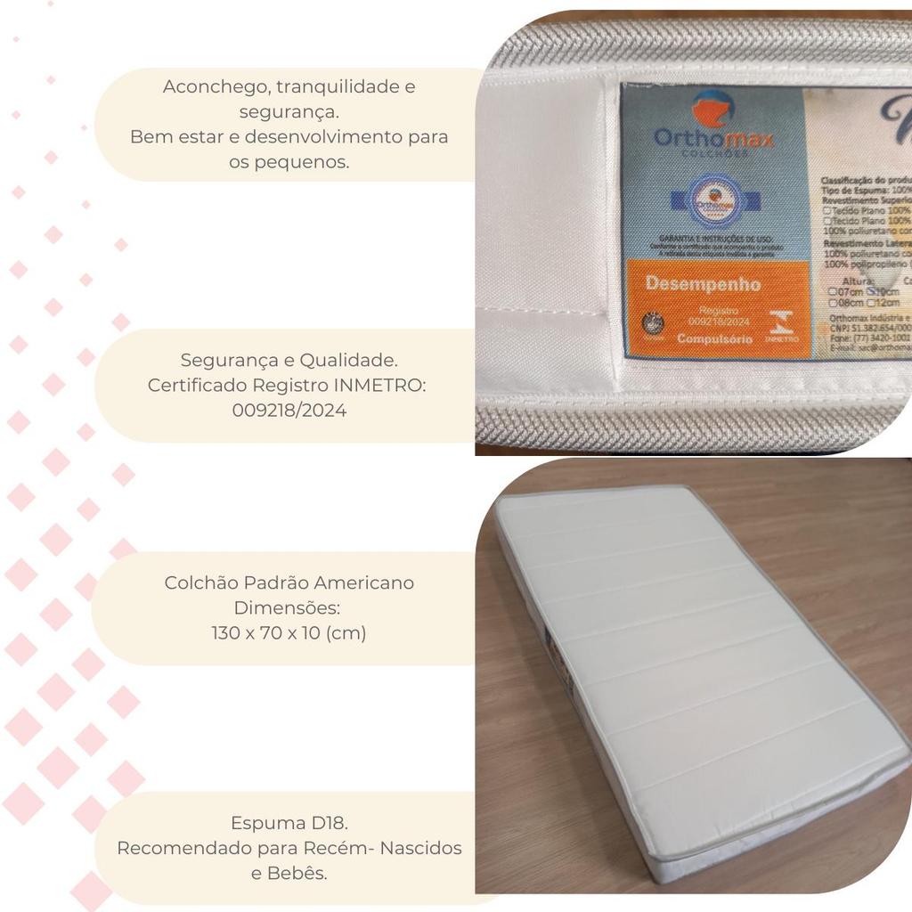 | Colchão de Berço 70x130x10 D18 Revestimento em poliester Faura este produto | R$ 199,90 | — | 4.5/5 | 4 |