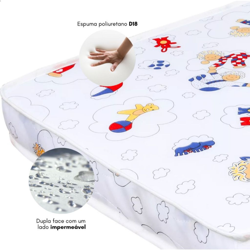 Colchão de Berço Chiqueirinho Moisés Desmontável 100x70x10cm Impermeável Espuma D18 Baby Moreira