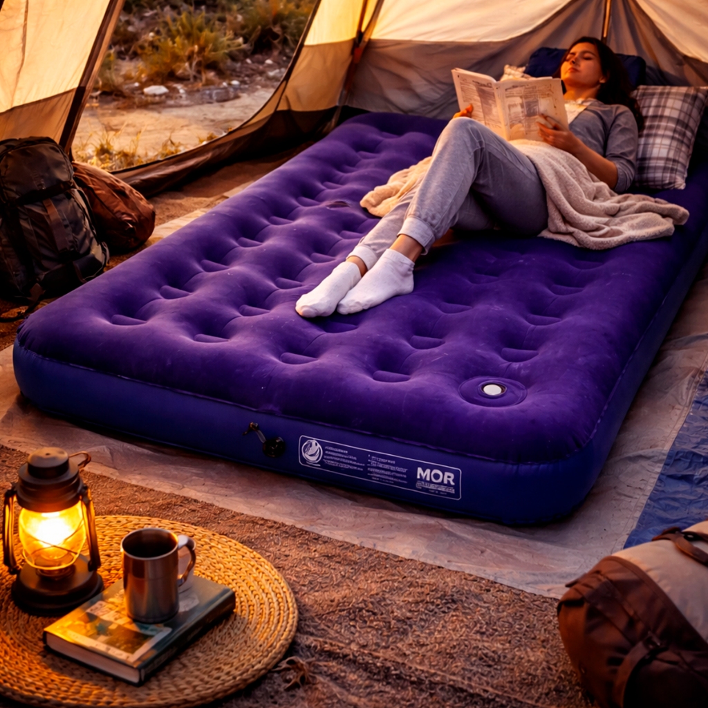 Colchão de Casal Solteiro Inflável Com Bomba De Pé Uso Fácil Resistente Aveludado Portátil MOR