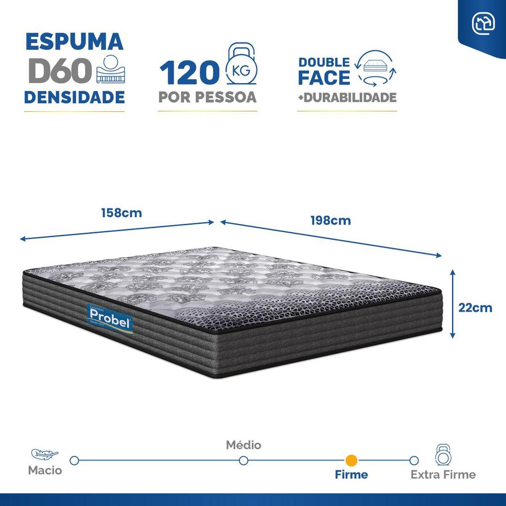 Colchão de Espuma D60 Double Face Guarda Costas Comfort Force Probel Queen 158cm