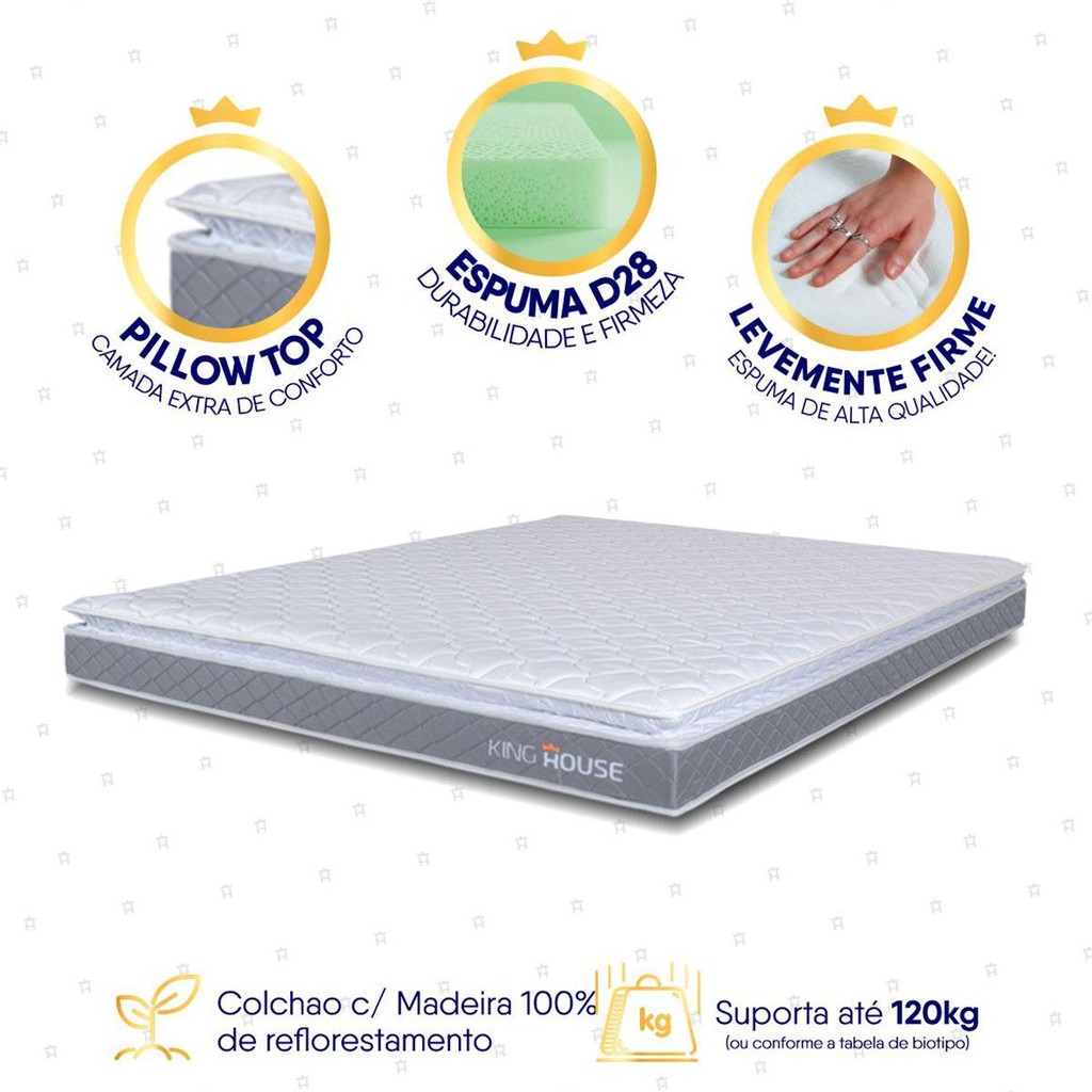 Colchão Durban Cinza Espuma D28 King 193x203x19 - King House