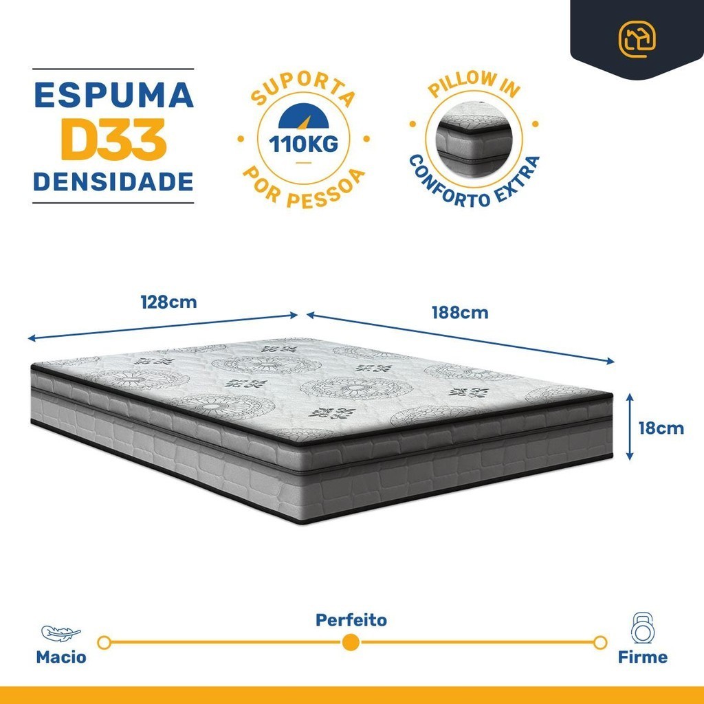 Colchão Espuma D33 Pillow In Anjos Ortosleep Viúva 128cm