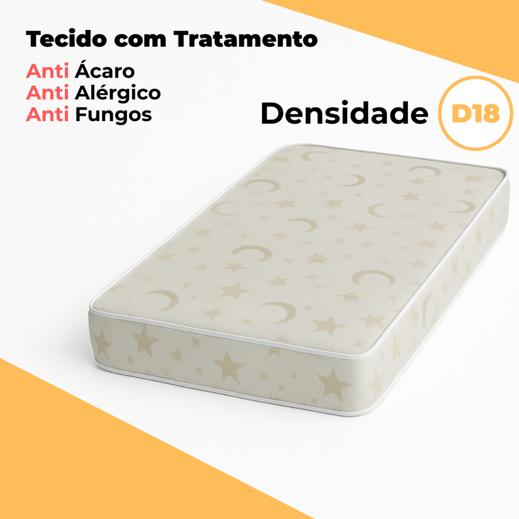 CONFORTO SEGURO PARA O SONO INFANTIL Colchão Infantil para Mini Cama com medida de 150x70 cm, produzido em espuma D18, ideal para oferecer o suporte adequado e o conforto que as crianças precisam durante o sono. ESPECIFICAÇÕES TÉCNICAS Dimensões: 150 cm (C) x 70 cm (L) x 10 cm (A) Espuma: D18 – firme e confortável Tecido: Revestimento com proteção antiácaro, antialérgico e antifungos BENEFÍCIOS E DIFERENCIAIS Espuma com densidade ideal para crianças em fase de crescimento Tratamento especial contra ácaros, fungos e bactérias – mais saúde para seu filho Tecido com barreira física contra alergênicos, ajudando na prevenção de problemas respiratórios Face impermeável, facilitando a limpeza e aumentando a durabilidade Estrutura leve e resistente, ideal para trocas e manuseio no dia a dia INDICAÇÕES DE USO Recomendado para mini camas padrão 150x70 cm Perfeito para uso em quartos infantis, escolas, berçários e casas de apoio GARANTIA E SUPORTE Garantia de fábrica: 3 meses contra defeitos de fabricação Suporte direto com a loja via chat da Shopee ITENS INCLUSOS 1 Colchão infantil 150x70x10 cm ENVIO E ENTREGA Produto disponível para envio imediato Postagem rápida com rastreamento total Embalado com proteção extra para garantir que chegue em perfeitas condições FAQ Serve para berço? Não. Este modelo é exclusivo para mini cama 150x70 cm.