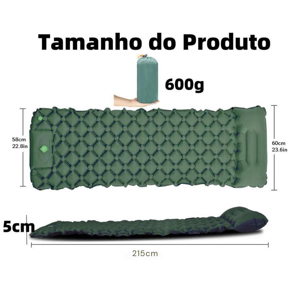 Colchão Inflável Automático Trekking Solteiro em Nylon 215 × 58 × 6 cm — ZELT O Colchão Inflável Automático Trekking Solteiro ZELT é a escolha perfeita para quem busca praticidade, conforto e durabilidade em aventuras ao ar livre. Fabricado em nylon TPU leve, resistente à água e agradável ao toque, ele garante uma experiência de descanso de qualidade em campings, trilhas, praias, gramados e até mesmo como opção prática para uso em casa. Projetado para uma pessoa, o colchão suporta até 200 kg, oferecendo resistência superior e estabilidade. Seu grande diferencial é o sistema de inflação automática por bomba de pé incorporada, que permite inflar o colchão em cerca de 30 segundos, sem necessidade de acessórios extras. Já a válvula de deflação garante esvaziamento rápido e fácil, otimizando o tempo de preparo e armazenamento. O design ergonômico, com travesseiro inflável integrado e pontos elevados de ar, proporciona suporte adequado para o corpo e para a coluna cervical, oferecendo noites de sono mais confortáveis e seguras, mesmo em terrenos irregulares. Além disso, o sistema anti-vazamento mantém o colchão estável durante toda a noite. Extremamente leve e portátil, pesa apenas 600 g e pode ser dobrado em um tamanho reduzido de 26 × 10 cm, ocupando pouco espaço na mochila. Acompanha uma bolsa de transporte, tornando o transporte ainda mais prático e organizado. Versátil, o colchão pode ser utilizado não apenas em campings e trekkings, mas também como tapete de praia, colchão de descanso, esteira para piqueniques ou até mesmo tapete de jogos infantis. Uma solução inteligente para quem busca mobilidade e conforto em qualquer situação. Características técnicas Modelo: Colchão Inflável Automático Trekking Solteiro Marca: ZELT Material: nylon TPU resistente à água Dimensões inflado: 215 × 58 × 6 cm Dimensões dobrado: 26 × 10 cm Peso: 600 g Capacidade de carga: até 200 kg Inflação: automática com bomba de pé incorporada (30 segundos) Deflação: válvulas de esvaziamento rápido Design ergonômico: pontos elevados de ar + travesseiro inflável integrado Sistema anti-vazamento: sim Indicação de uso: trekking, camping, pesca, praia, viagens e uso doméstico Acessórios inclusos: 1 bolsa de transporte Garantia: 3 meses Benefícios Praticidade: inflação em apenas 30 segundos com bomba de pé embutida. Conforto superior: pontos de ar e travesseiro integrado para apoio ideal do corpo. Portabilidade: leve (600 g) e compacto, cabe facilmente em mochilas. Durabilidade: nylon TPU resistente à água, rasgos e desgaste. Segurança: suporta até 200 kg, ideal para diferentes perfis de usuários. Versatilidade: uso em camping, trekking, praia, piquenique e até como tapete infantil. Fácil armazenamento: acompanha bolsa de transporte prática e compacta. Proteção: sistema anti-vazamento que mantém a estabilidade durante a noite. Torne suas aventuras ao ar livre ainda mais confortáveis com o Colchão Inflável Automático Trekking Solteiro em Nylon ZELT — leve, compacto e resistente, feito para quem valoriza praticidade e descanso de qualidade em qualquer lugar. *Imagens meramente ilustrativas