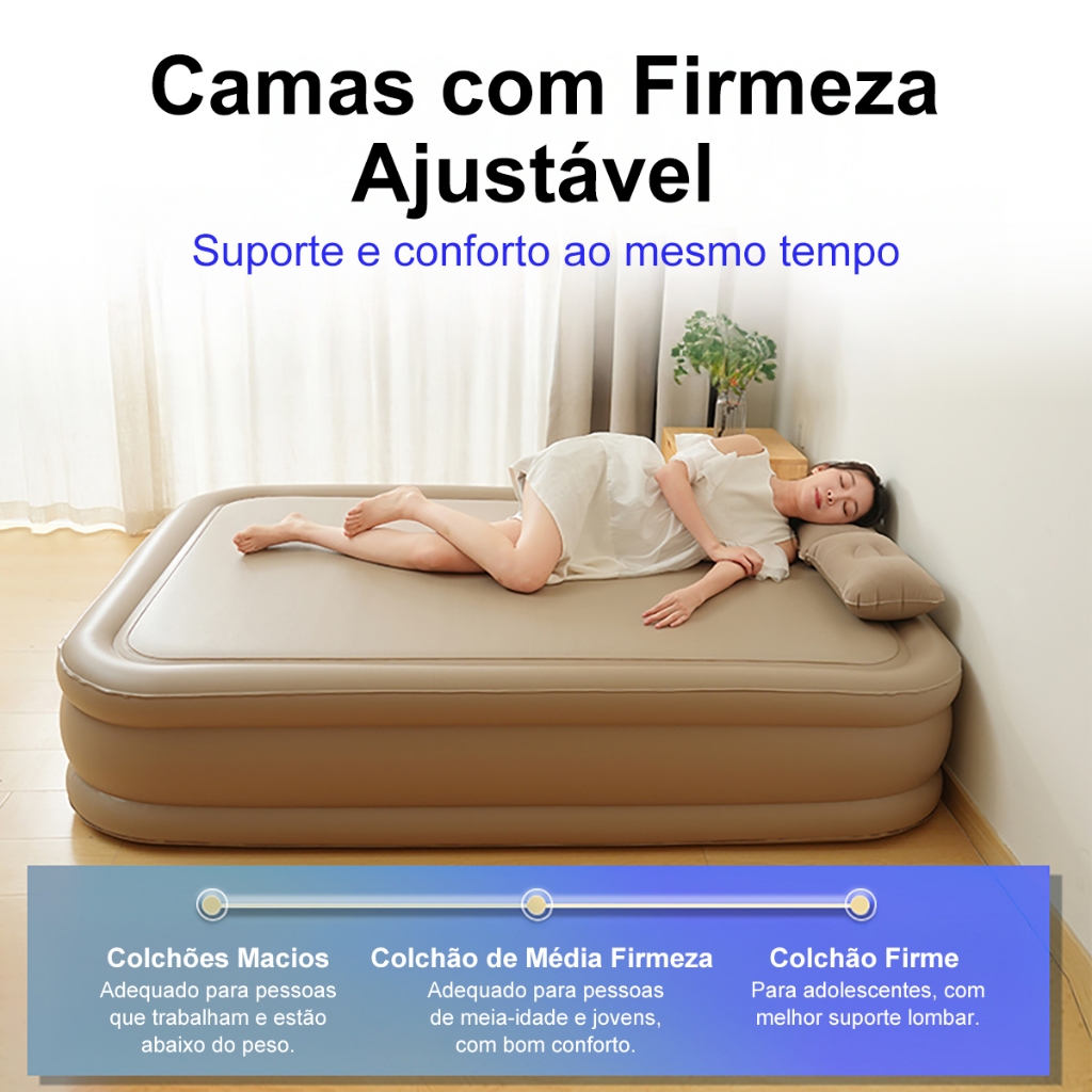 Colchão Inflável Casal Cama 600KG Bomba Inflável Com Bateria De Lítio Integrada 203*154*42cm