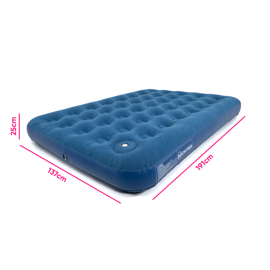 Colchão Inflável Casal Multiuso Azul Ontrek Com Fole Manual Incluso Resistente Até 200kg Confortável