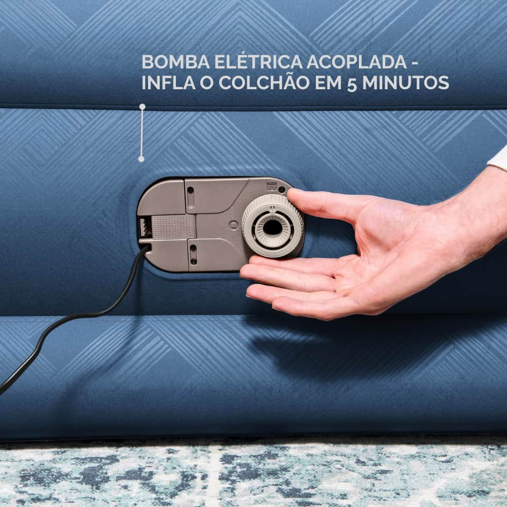 Colchão Inflável Casal Queen Bomba Embutida 220V Fortech Elétrico Alto 46cm X 203cm X 152cm Bestway