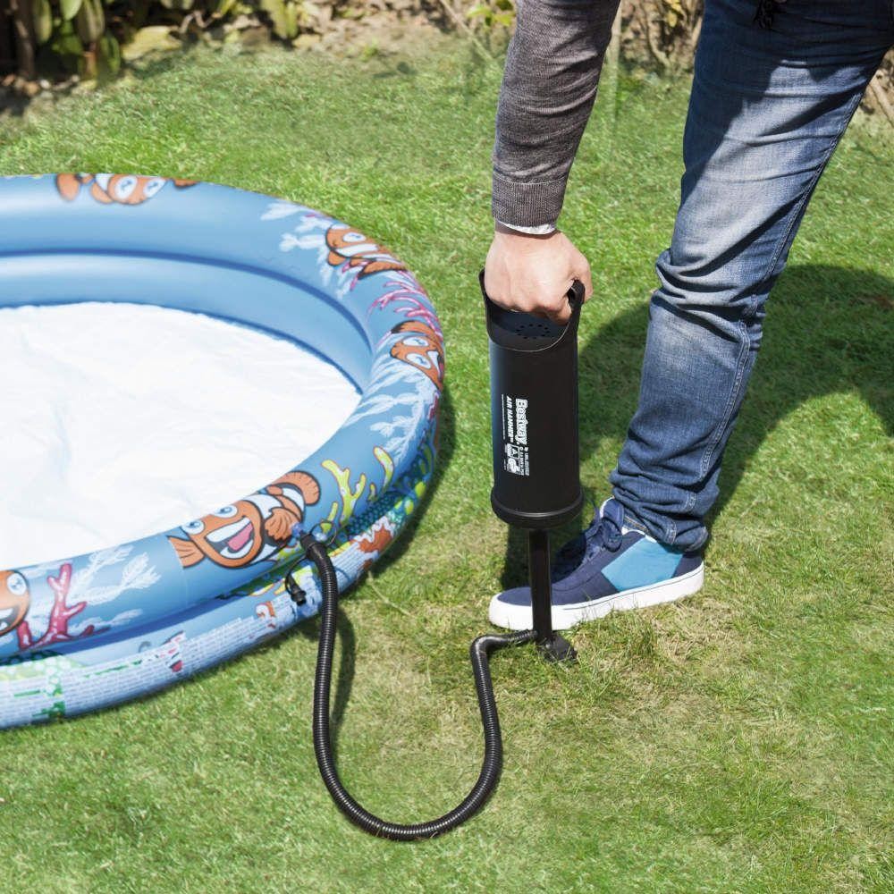 Colchão Inflável Solteiro Bestway 185x76x22cm + Bomba De Ar Bestway Manual Com 3 Bicos Adaptadores Eleve seu conforto nas noites de acampamento ou em viagens com o Kit Colchão Solteiro Inflável Bestway 6700 185x76x22cm , acompanhado pela prática Bomba de Ar Bestway Manual! Este kit é a combinação perfeita de comodidade e praticidade para suas aventuras ao ar livre. O colchão inflável, com suas generosas dimensões de 185x76x22cm, oferece um amplo espaço para um sono relaxante, enquanto a bomba de ar manual Bestway, equipada com 3 bicos adaptadores, permite inflar e desinflar facilmente, garantindo uma preparação rápida e eficiente para suas noites de descanso em qualquer lugar. INFLADOR: - Tipo: Manual - Pressão: 0.28bar (4 psi) - Volume: 0,85L/ciclo - Dimensões(AxLxP): 30x11x9cm COLCHÃO: - Tipo: Inflavel, de solteiro - Capacidade(kg): até 150kg - Material: Vinil - Válvula de esvaziamento: 1 - Dimensões (AxLxP): 22x76x185cm Itens Inclusos no Kit: - 1 Colchão Solteiro Inflável Bestway 6700 185x76x22cm - 1 Bomba de Ar Manual Bestway 30cm Infláveis 3 Bicos Adaptadores