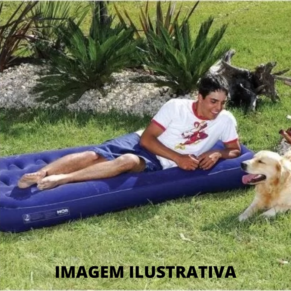 Colchão Inflável Solteiro Mor + inflador Embutido + kit Reparo