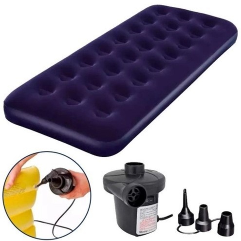 Colchão Inflavel Solteiro Resistente Suporta 150 Kilos + Bomba de Ar Eletrica Bivolt