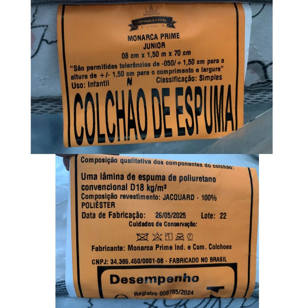 BENEFÍCIOS E DIFERENCIAIS * Fácil manuseio * Cabe em qualquer lugar * Fácil limpeza * Tipo Tecido de Forração Revestimento: Poliéster * * Tecido com Tratamento: Anti Ácaro e Anti Fungo * Double side (pode utilizar dos dois lados) ————————————————————— CARACTERÍSTICAS TÉCNICAS - Dimensão: 8cm de altura x 150cm de comprimento x 70cm largura - Tamanho: altura 8cm x comprimento 150cm x largura 70cm - Tecido: Poliester - Cor: branco - Material do colchão: espuma D18 100% convencional - O tecido contém desenhos - Este anúncio não disponibiliza escolha de cor, estampa ou tecido. ————————————————————— INDICAÇÕES: • Indicação de Uso: para até 40kg. • Será transportado dobrado mas ao recebê-lo deixar por umas horas aberto para arejar o produto. ————————————————————— INSTRUÇÕES DE CONSERVAÇÃO: Manter em local arejado Não alvejar Não secar em tambor Secagem à sombra Não passar com ferro Não Limpar a Seco Limpeza a úmido, processo normal ————————————————————— ATENÇÃO O que você precisa saber sobre este produto: * Fabricado com tecido de poliéster. * O tamanho é 70 x 150 x 8 * Peso máximo suportado: 40 kg. * Qualidade ao dormir. * As imagens podem ser ilustrativas. * O desenho pode não ser o mesmo da imagem. * As cores dos objetos podem sofrer alterações devido a luminosidade, configurações do monitor e até mesmo a percepção do usuário. —————————- INFORMAÇÕES IMPORTANTES: - Este anúncio não oferece possibilidade de escolha de cor ou tamanho. - Componentes ilustrativos das imagens deste anúncio tem única finalidade de dar uma visão e ideia ambientada completa para uso do produto. —————————- INFORMAÇÕES: Nome: Colchão prime junior Densidade: 18 Marca: Monarca Prime Ind. E Com. Colchoes CNPJ: 34.365.450/0001-08 Registro inmetro: 008785/2024 Característica: Uma lâmina de espuma de poliuretano convencional D18kg/m2. Revestido com tecido Jacquard - 100%poliéster Fabricado no Brasil ------------------------------ A LOJAS BOM SONO oferece total apoio e responsabilidade até a entrega do produto a plataforma shopee. Tudo para garantir a você cliente, conforto e segurança em sua compra.