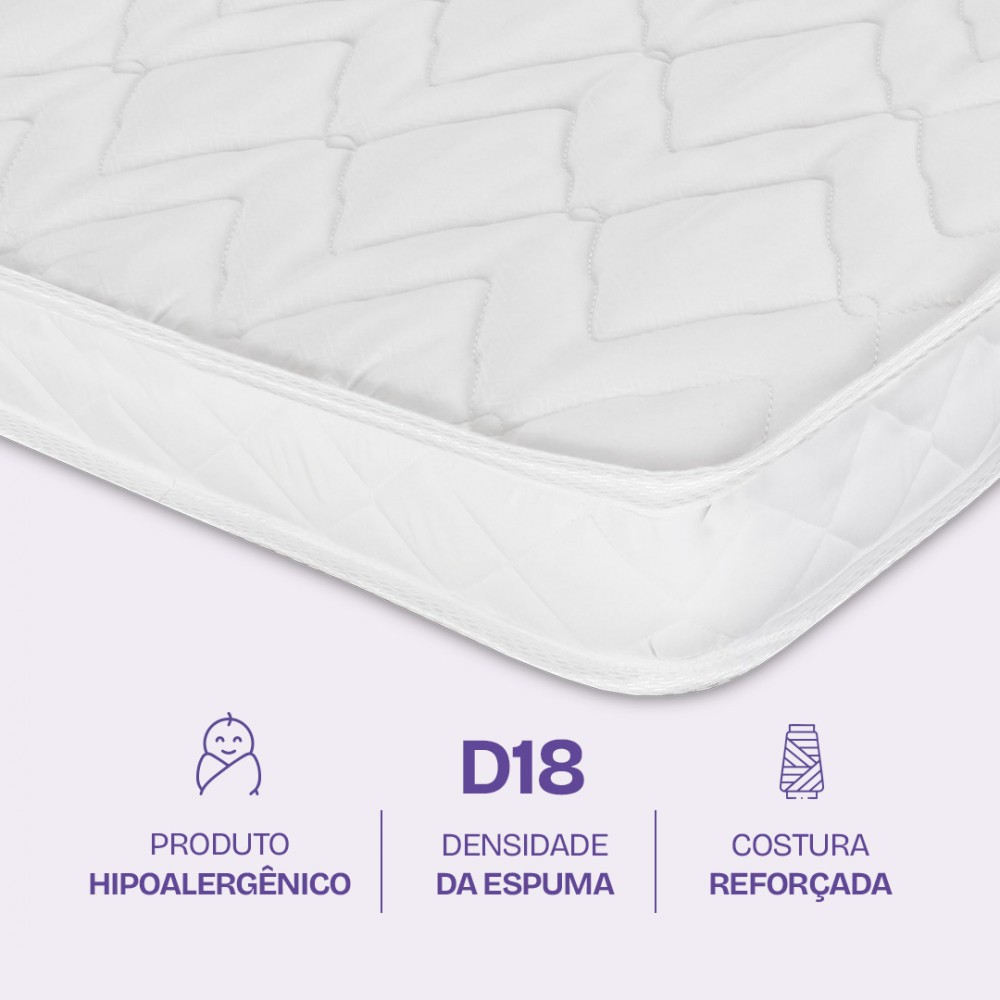 Colchão para Berço Americano D18 Hipoalergênico 130x70x10cm - BF Colchões