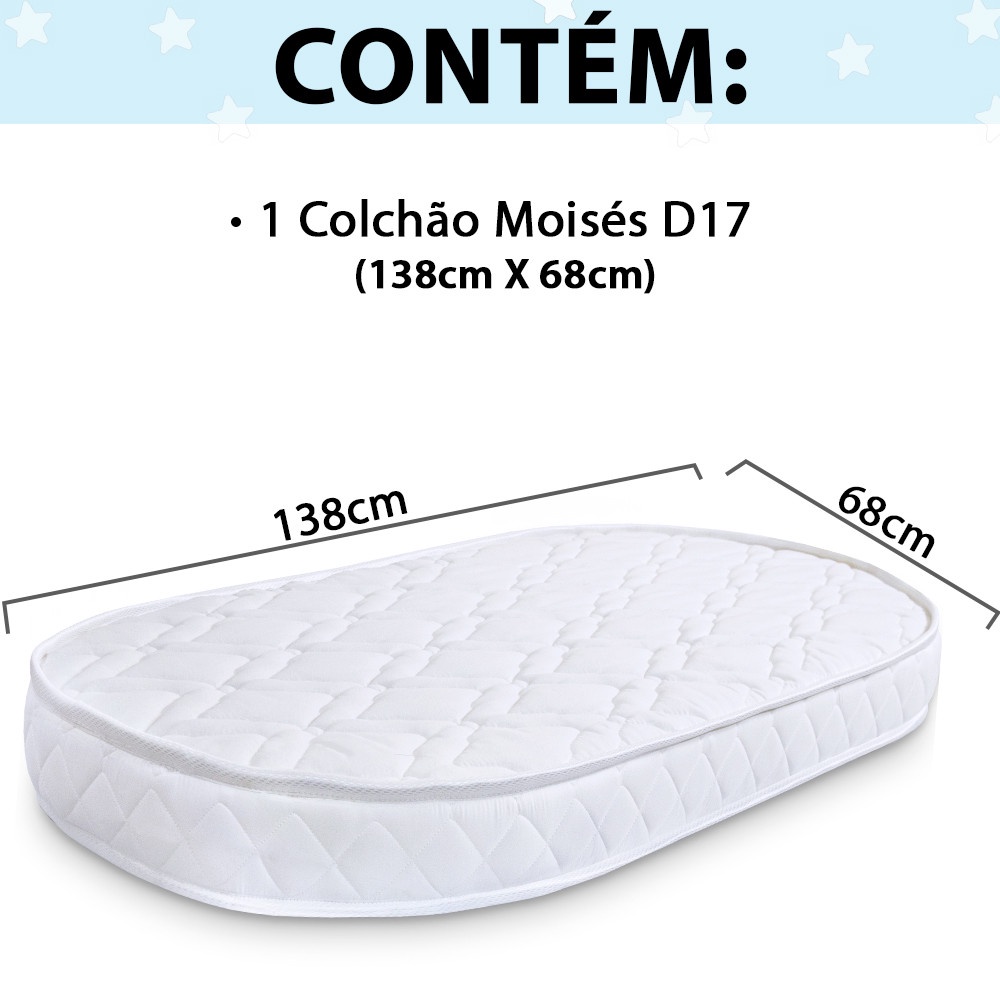 Colchão para Moisés Oval de Berço Infantil Bebê Antialérgico 138x68x10cm BF Colchões