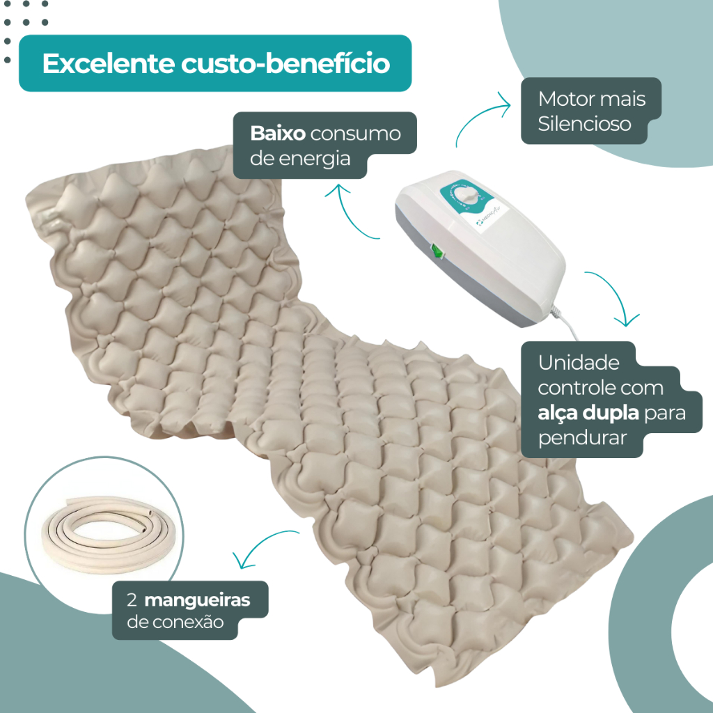 Colchão Pneumático Hospitalar Anti Escaras Suporta 130kg Hospitalar Ortopédico Bomba Ar Compressor