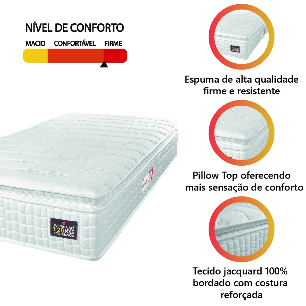 | Colchão Solteiro Espuma D33 Vangogh Pillow Top 88x188x29cm Branco H... este produto | R$ 549,00 | — | 4.6/5 | 1 |