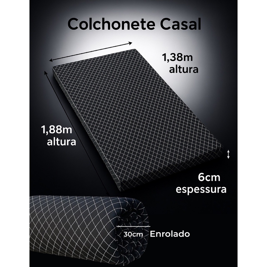 Colchonete Camping Casal 6x138x190cm Espuma premium D28 Portatil Viagem ferias infantil