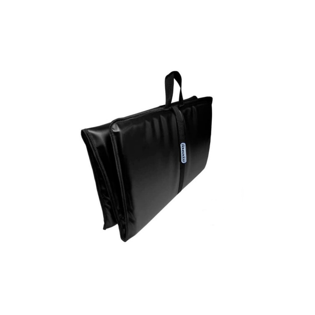 Colchonete dobrável , leve para onde quiser Leve e portatil Fácil higienização , tecido impermeável Cor Preto Densidade da espuma D28 Acabamento em fita de polipropileno , Alça para transporte Tamanho aberto: 50 cm Largura x 90 cm comprimento x 3 cm altura Tamanho Fechado: 30 cm Largura x 50 cm comprimento x 9 cm altura